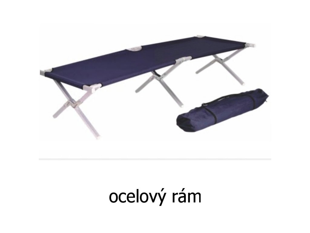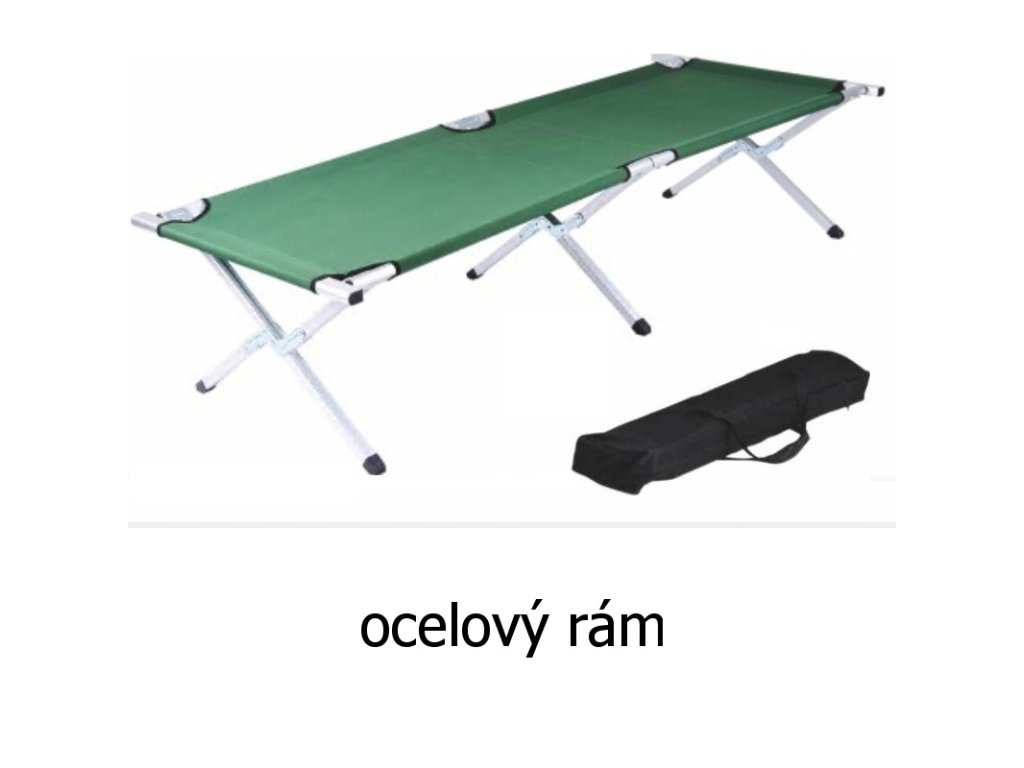 Polní lůžko - skládací postel s přepravní taškou. Ideální pro kempování, nebo pro relax v zahradě.Rozměr: 190 x 62 x 42 cm