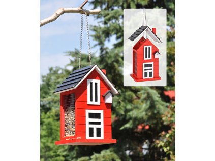 Domeček krmítko pro ptáčky 14 x 12 x 22 cm dřevo červený